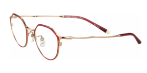 柔らかなピンクレッドと上品なゴールドが溶け合う、女性らしさを引き立てるエレガントなフレーム。