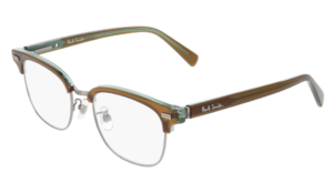 透明感のあるブラウンに爽やかなブルーを効かせた、軽やかな印象のユニセックスフレーム。