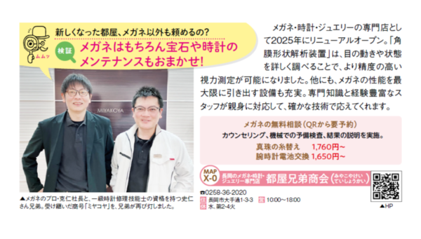 また、メガネの見え方を詳しく調べる設備や、無料相談についても取り上げていただきました。